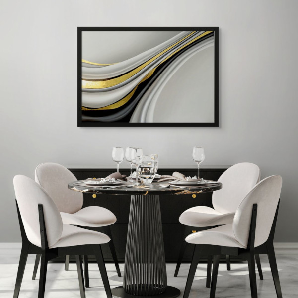 A fekete és fehér absztrakt festmények letisztult, monokróm eleganciát képviselnek, míg a színes, rétegzett felületű alkotások dinamikusabb, energikusabb megjelenést adnak a falnak. Olyan faliképek ezek, amelyek nem pusztán dekorációk, hanem hangulatot teremtenek és saját ritmust adnak a térnek.